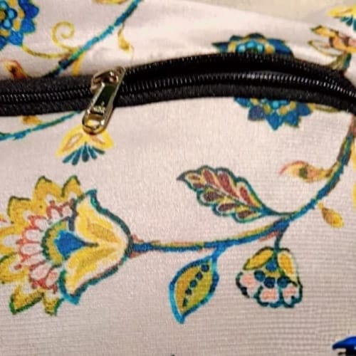 Floral Haven Printed Suede Premium Fabric Cushion Cover Floral pattern with a mix of blue, yellow and orange flowers on a white background