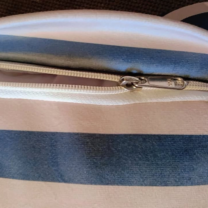 Ocean Breeze Printed Suede Premium Fabric Cushion Cover striped pattern with shades of blue and white